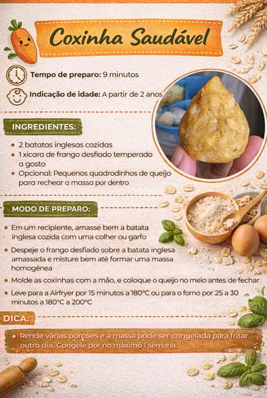De forma geral, as receitas são pensadas para crianças a partir de 2 anos, com adaptações simples para diferentes faixas etárias. Você pode ajustar porções e formatos conforme a fase do seu filho.