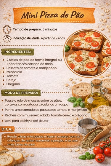 Um EBook completo com mais de 200 receitas rápidas, pensadas para pais reais… com rotina corrida.